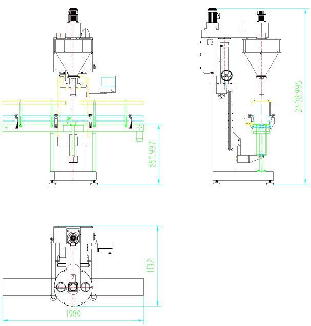 該機主要針對容易揚塵的超細粉末及高精度的包裝要求而開發設計,能完成瓶子自動定位和升降、充填及計量等工作,它由一臺稱重式螺桿充填機、一臺鏈板輸送帶及一個氣動定位裝置組成,根據裝在容器下面的重量傳感器給出的信號完成雙速充填、計量及升降等工作。適用于包裝添加劑、碳粉、滅火器干粉、其它超細粉末、及有高精度包裝要求的粉末等。