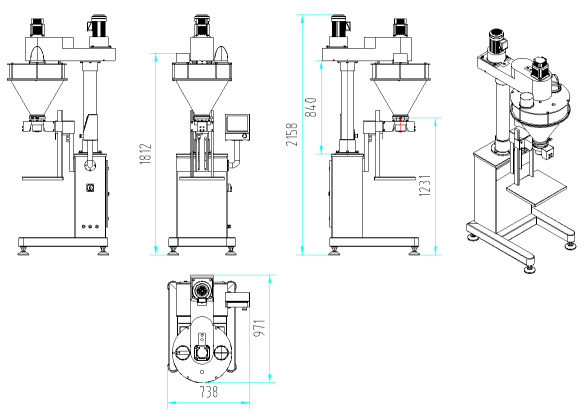 氣動夾袋裝置和托架裝在重量傳感器上,根據預先設定的重量進行快速和慢速充填,高反應速度的稱重系統,保證高精度得以實現。